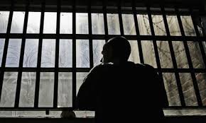 An image of a black man behind bars
